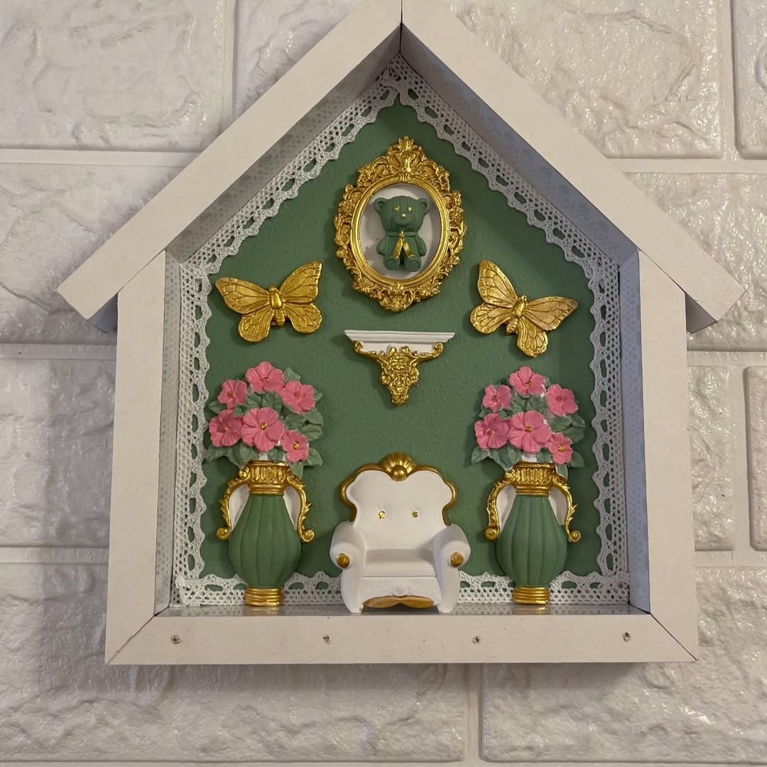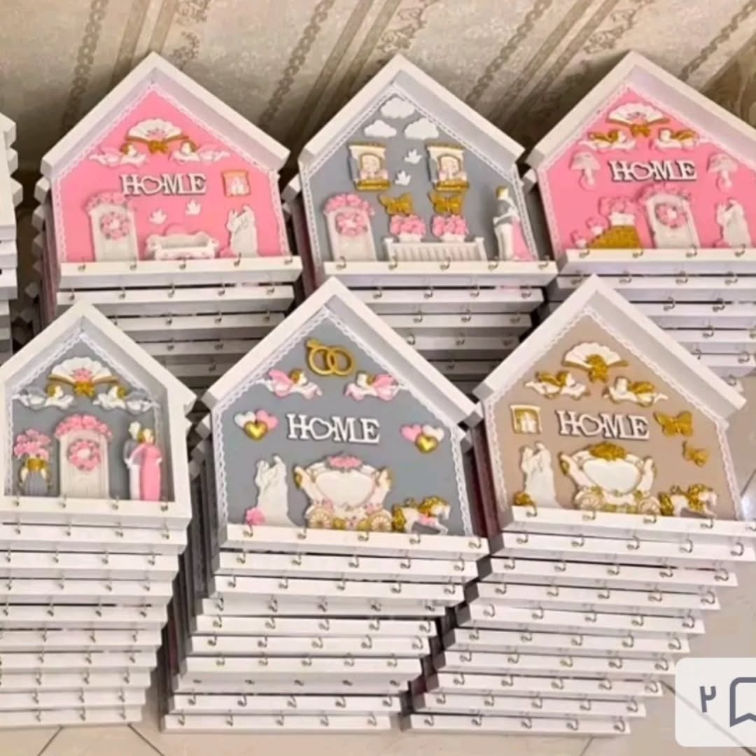 سطل ودستمال آینه ای چوبی سفید صورتی طوسی طلایی نقره ای
