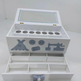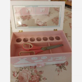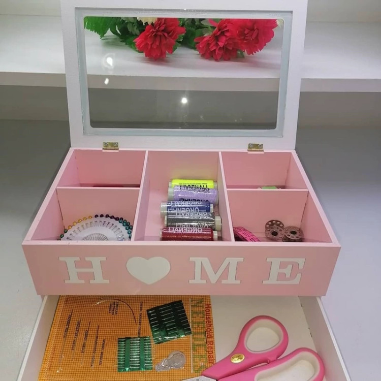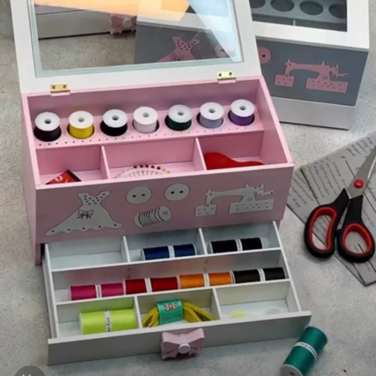😍😍😍جنس چوب دولایه هست با کیفیت عالی👌👌👌 دارای کشو🌹قیمت فقط واسه باکس خیاطی هست 🌹بدون لوازم 🌸🌸🌸 روش شیشه میخوره❤️❤️❤️ طبقه بالا میشه قیچی رو گذاشت ولوازم دیگه هم گذاشت. کشو پارت بندی شده واسه لوازم کوچکتر😊😊😊