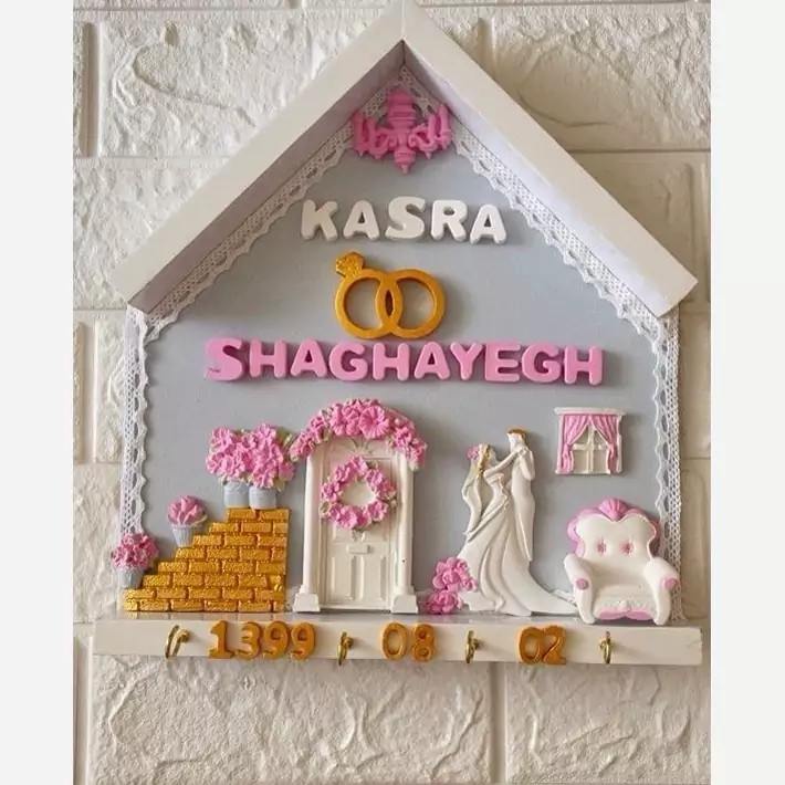😍😍😍جا کلیدی ورودری عروس با ذکر نام وتاریخ عروسی ورنگ دلخواه شما قابل سفارش میباشد🥰🥰🥰جنس کارهام ن همه پودر سنگ ترک وبدون ریزش 🌹🌹🌹تحویل در اراک وملایر وارسال به همه شهرهای ایران با پست🩷🩷🩷کارها با کیفیتی بینظیر