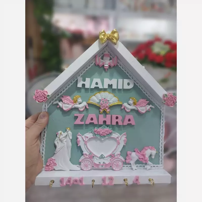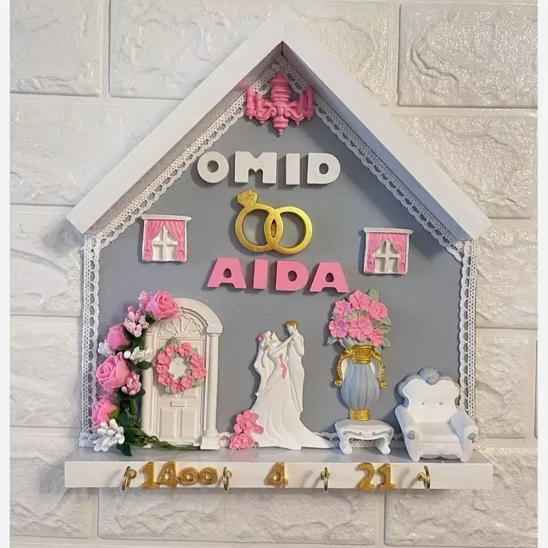 😍😍😍جا کلیدی ورودری عروس با ذکر نام وتاریخ عروسی ورنگ دلخواه شما قابل سفارش میباشد🥰🥰🥰جنس کارهام ن همه پودر سنگ ترک وبدون ریزش 🌹🌹🌹تحویل در اراک وملایر وارسال به همه شهرهای ایران با پست🩷🩷🩷کارها با کیفیتی بینظیر