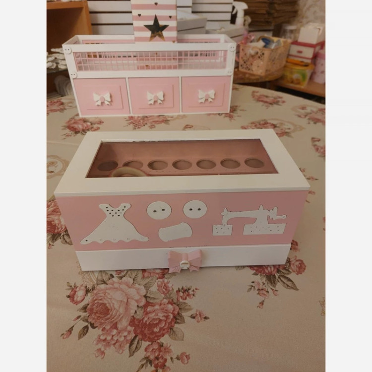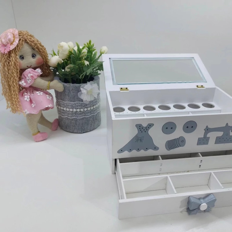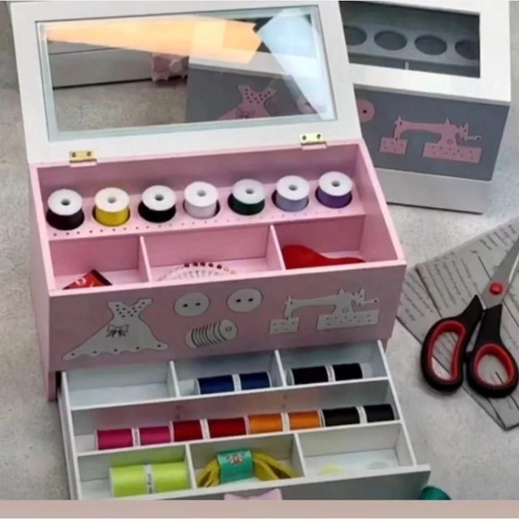 جعبه خیاطی کشو دار دارای رنگ بندی 🌸🌸🌸سفید صورتی طوسی❤️❤️❤️❤️کشو پارت بندی شده🥰🥰🥰کیفیت بینظیر🌹قیچی طبقه بالا جا میشه🥰🥰🥰